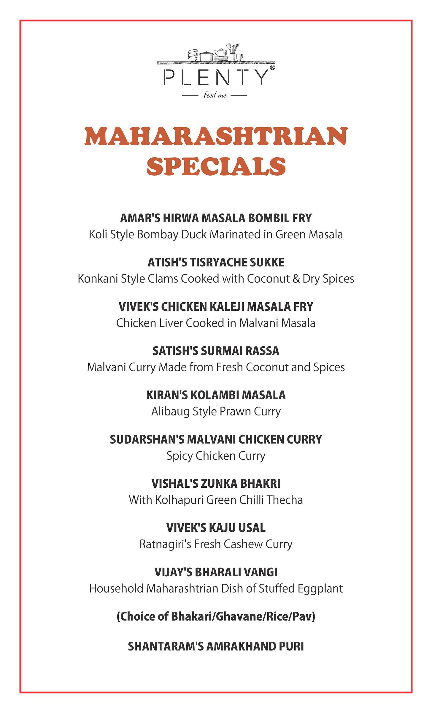 One of my favourites was our Maharashtrian Specials menu. A lot of our staff came from remote parts of the state, so we invited each of them to get a dish from their homes that had a special place in their hearts - something they loved and ate regularly with their families. We were touched by how much pride and enthusiasm they put into the task, eager to show off the dishes that they grew up eating - some cooked by their mothers and wives, some cooked by them after their shifts.